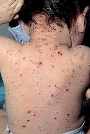 Los síntomas que presenta la enfermedad son, fiebre, dolor de cabeza y dolor de estómago. Las ampollas empiezan a aparecer primero en la cara, luego en la parte media del cuerpo o en el cuero cabelludo. Es recomendable si el niño concurre al colegio, éste no asista hasta que el médico lo indique o las ampollas cicatricen por completo hasta desaparecer, para no contagiar a sus compañeros. En el caso de los adultos, vale lo mismo, no se dirija al trabajo, para evitar más contagios.