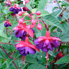 Su cáliz de color rojo o blanco, pétalos de color fucsia o púrpuras, rosados o blancos. Florece desde la primavera hasta el otoño en forma ininterrumpida. Si se le proporciona adecuada protección de los fríos, puede florecer en el invierno. Nunca se la debe plantar a pleno sol, sí puede estar a media sombra, como la sombra de árboles frondosos.